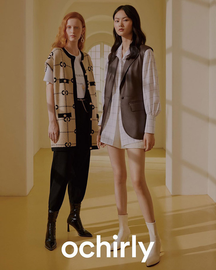 Models He Cong and Victoria Schons are enlisted to feature in Ochirly's Fall/Winter 2020 Campaign. Shot in studio images by fashion photographer Jumbo Tsui, the campaign highlights the sleek and sophisticated designs from the fashion label along with smart accessories. Styled by Evan Feng, with set design from Feifei Li at Showcase, and production by Insight Production, the campaign is understated and chic. The models also sport hair and makeup by hair stylist Issac Yu, and makeup artist Dai Gan respectively.
