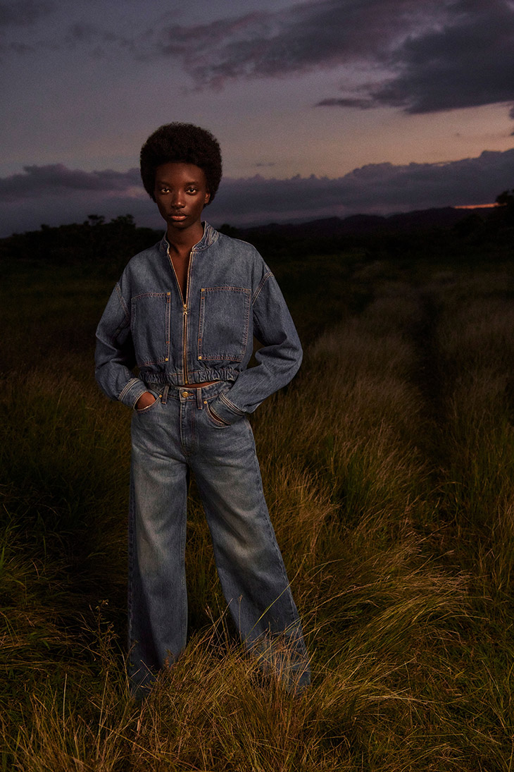 Knitwear takes center stage, ranging from relaxed wavy silhouettes crafted from an intricate mix of yarns to compact, architectural knits adorned with fringe. Mixed pleating, quilting, and crochet appear in a palette of earthen monochrome silks and cottons, complemented by the collection’s expanding denim offerings in unique washes and styles.